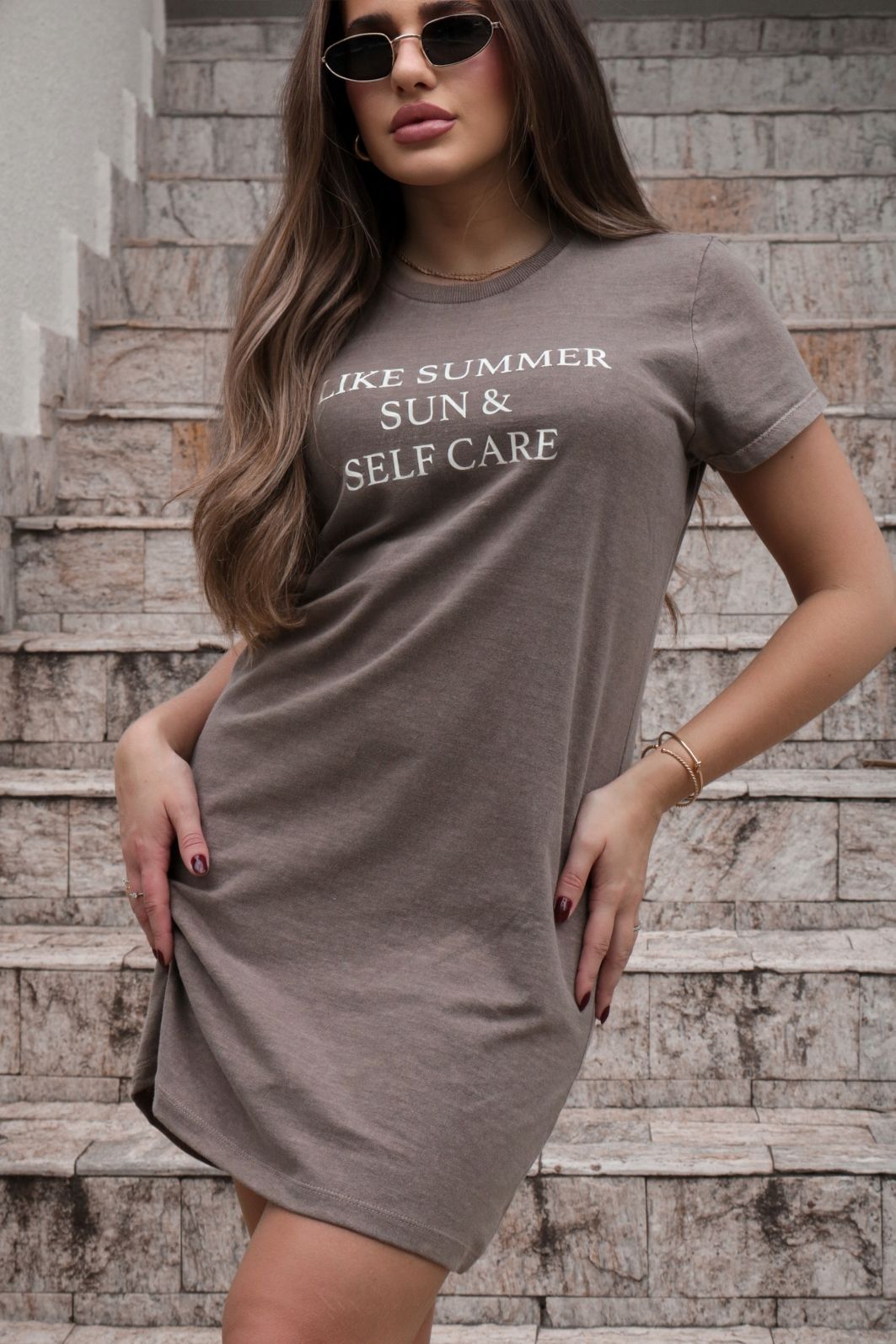 O Vestido I Like Summer da Tee Linda é confeccionado em malha 100% algodão, garantindo toque macio, frescor e praticidade para o dia a dia. Com modelagem soltinha e versátil, traz estampa frontal que traduz leveza e bem-estar, criando um visual despojado sem abrir mão da elegância minimalista.
